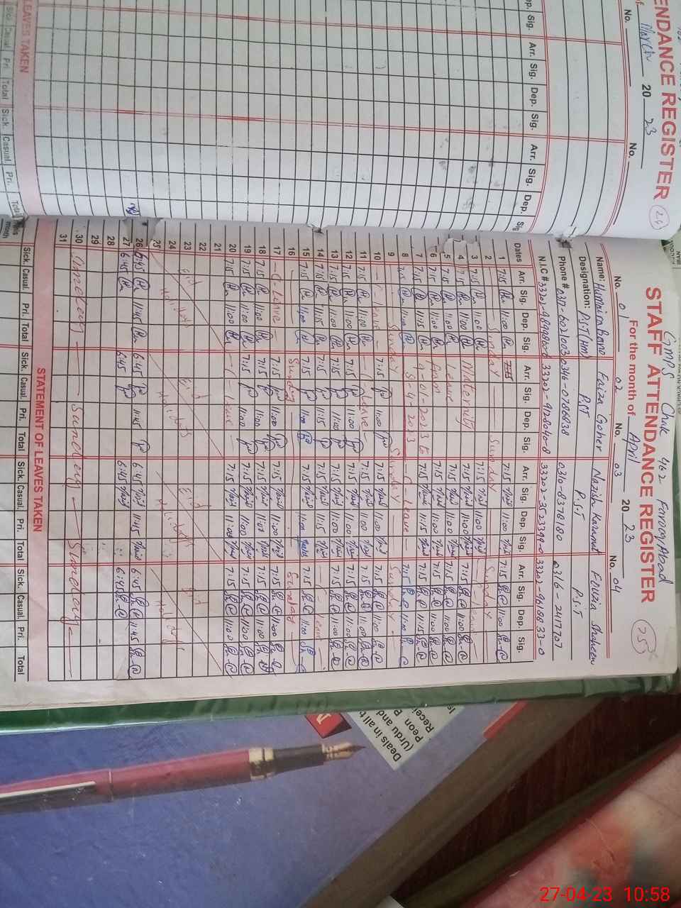 | Name: HU**** BA**** Designation: (School Headmaster's/Headmistress's) PST Phone/Cell Number: 03**** |