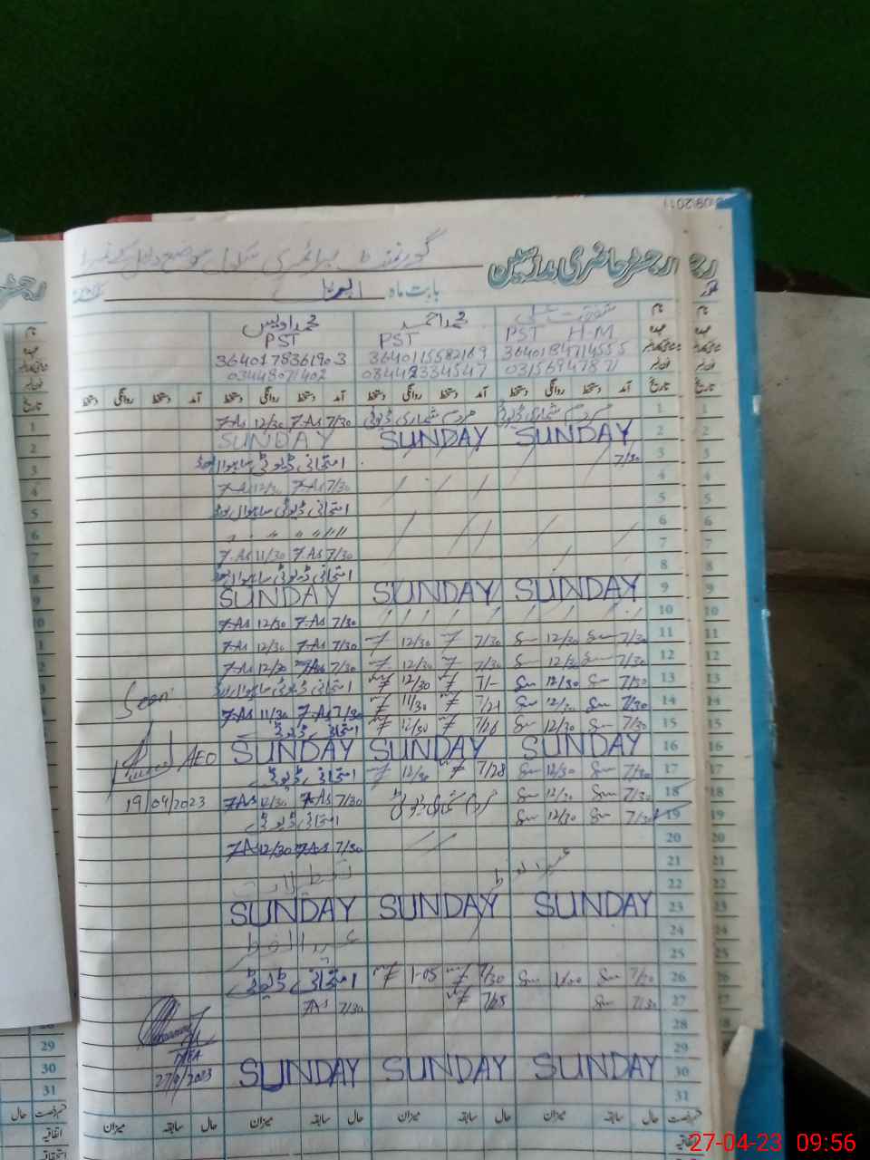 | Name: SH**** AL**** Designation: (School Headmaster's/Headmistress's) PST Phone/Cell Number: 03**** |