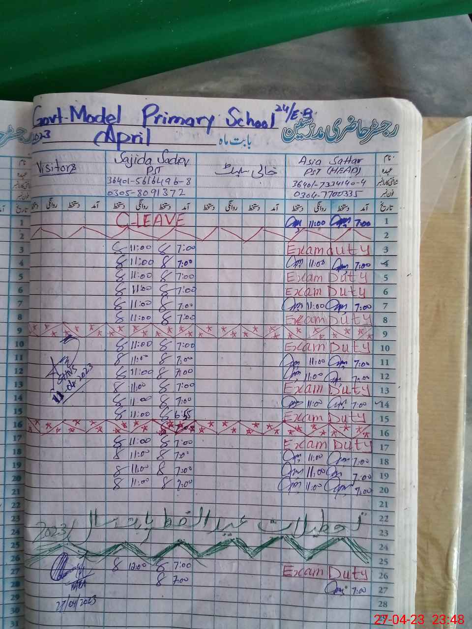 | Leave | Duty | Absent | Maternity | Medical | Ex- Pak |