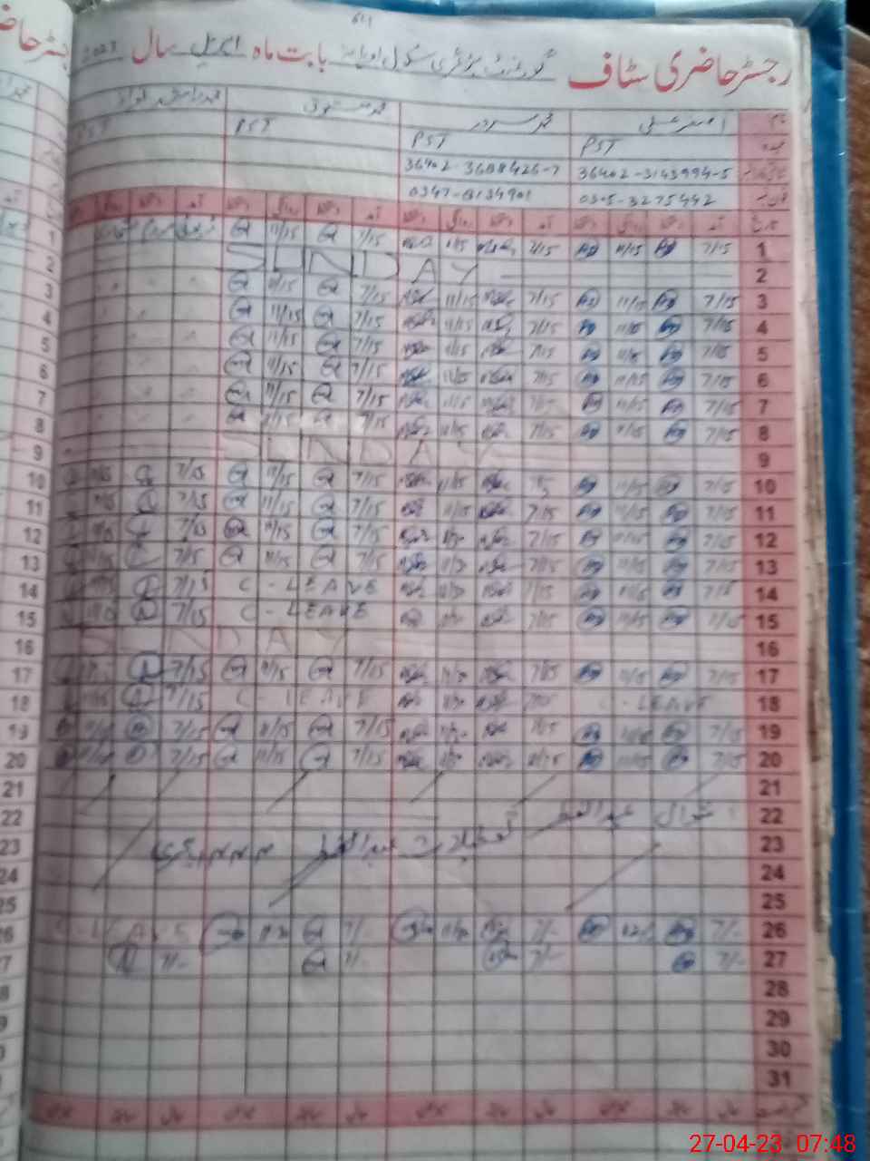 | Name: AS**** AL**** Designation: (School Headmaster's/Headmistress's) PST Phone/Cell Number: 03**** |