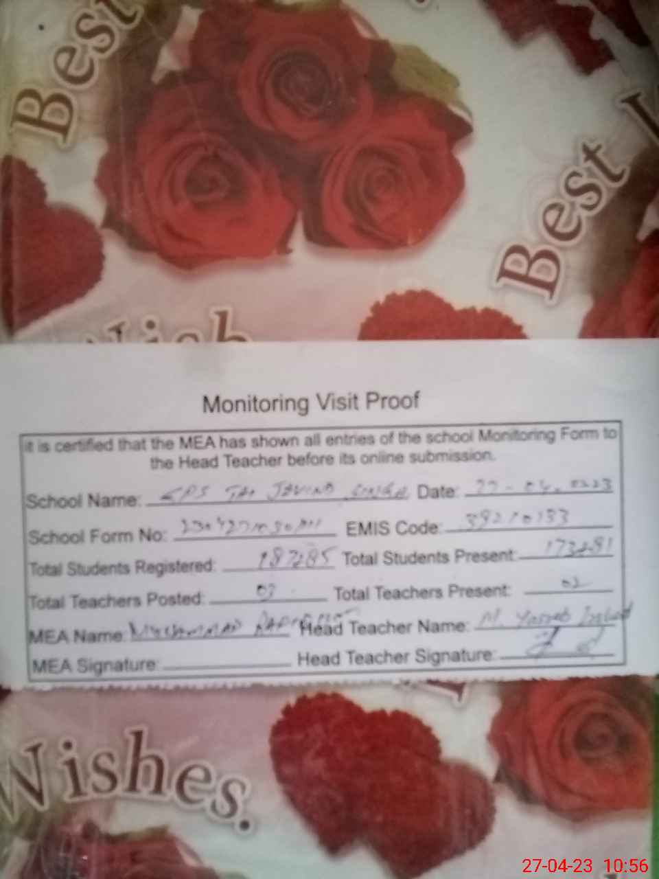 | Attendance Register | Head Teacher | MEA with School | Visit Proof |