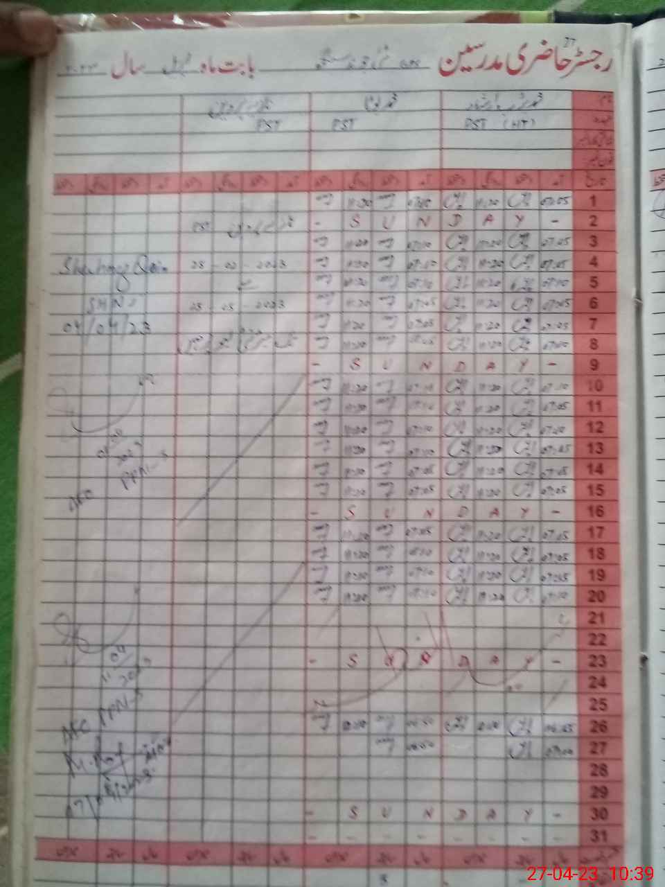 | CNIC | Full Name | Designation | R/C | Absence During Last Calender Month |