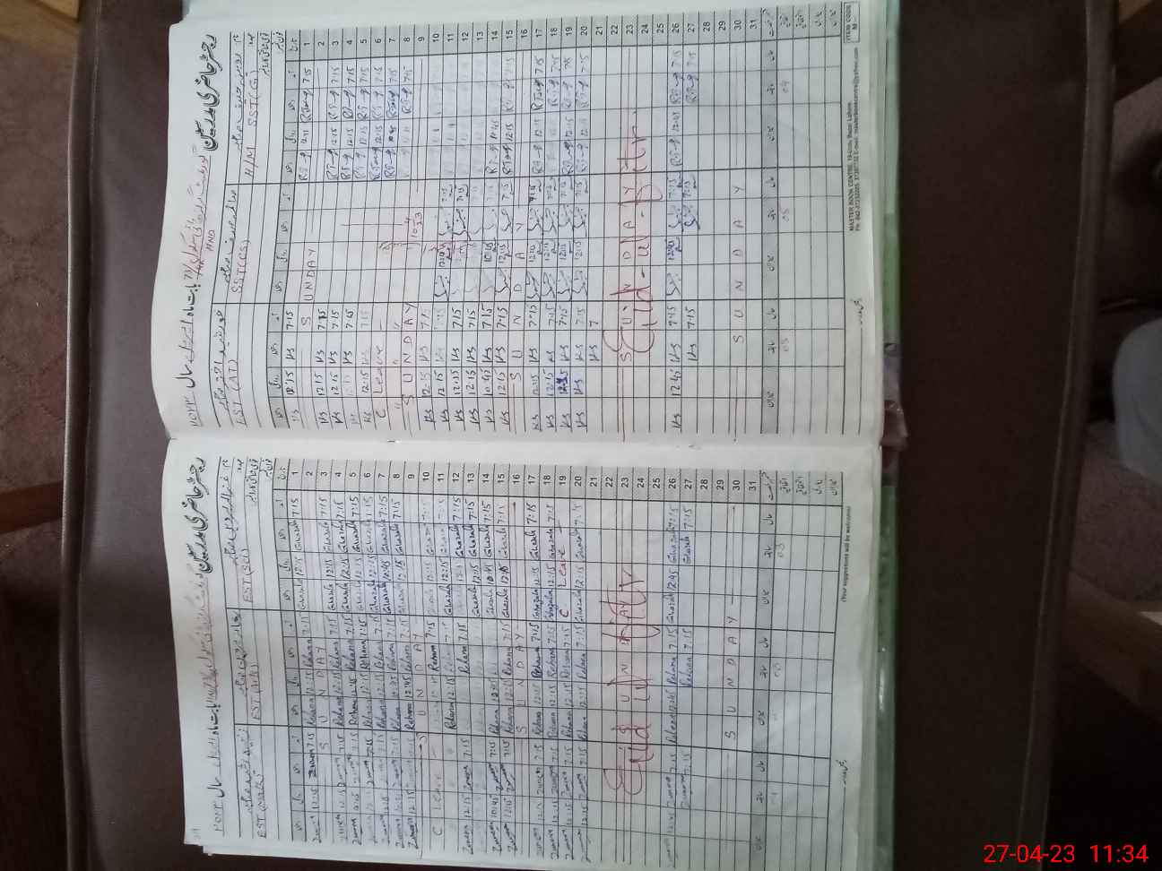 | CNIC | Full Name | Designation | R/C | Absence During Last Calender Month |