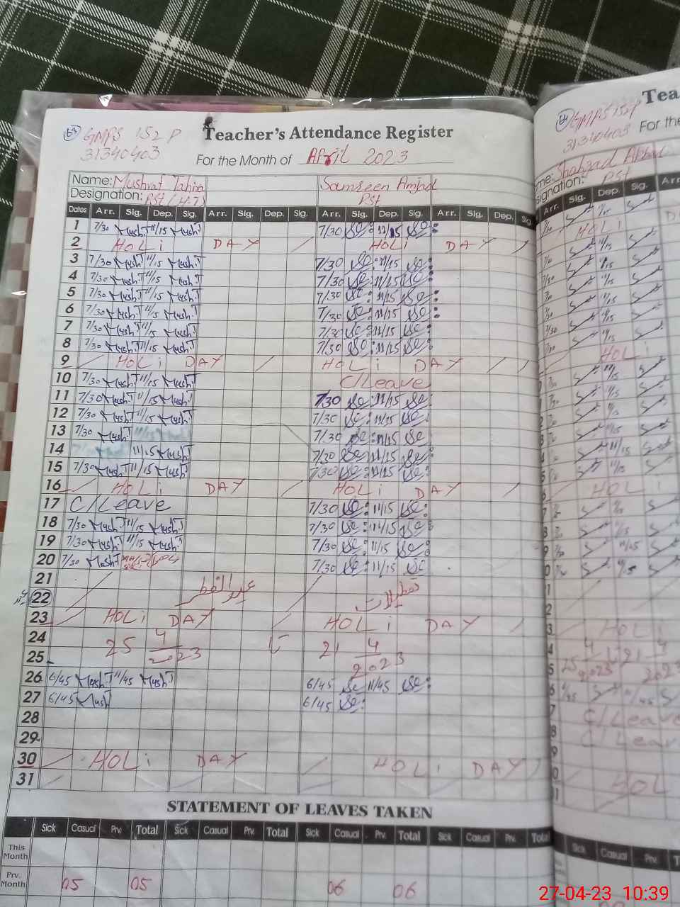| 31**** | Sh**** Ak**** | PST | Regular | 2 | 0 | 0 | 0 | 0 | 0 | 0 | 0 | 2 | Casual |