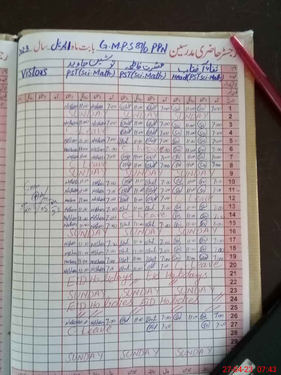 | Attendance Register | Head Teacher | MEA with School | Visit Proof |