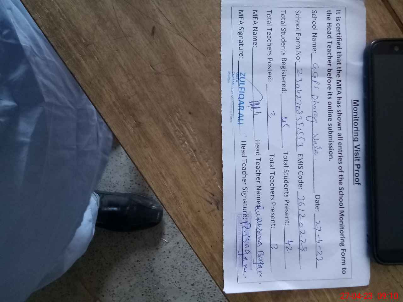 | EMIS Code: 36120229 | Name of School: GGPS DHORAY WALA NO. 2 SHUJABAD | |||