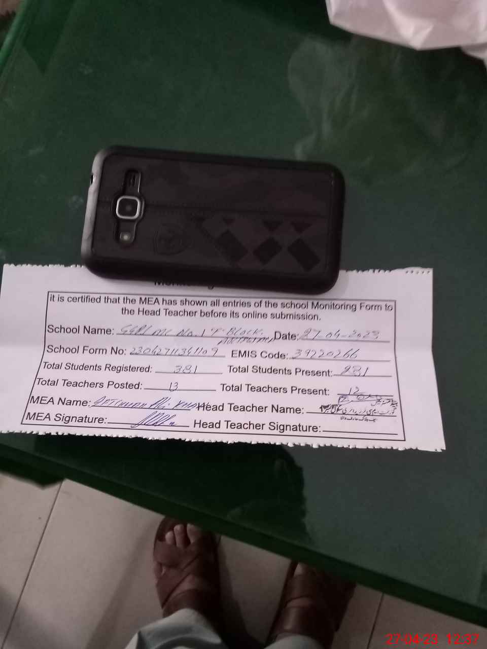 | EMIS Code: 39220266 | Name of School: GGPS MC NO. 1 F BLOCK ARIF WALA | |||