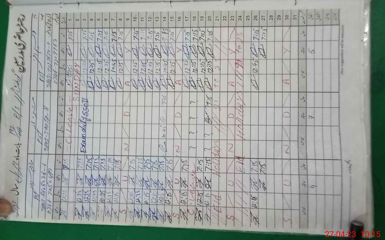| CNIC | Full Name | Designation | R/C | Absence During Last Calender Month |