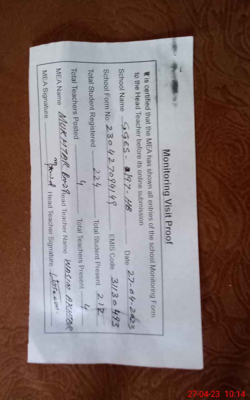 | EMIS Code: 31130493 | Name of School: GGES CHAK NO. 197/HB | |||