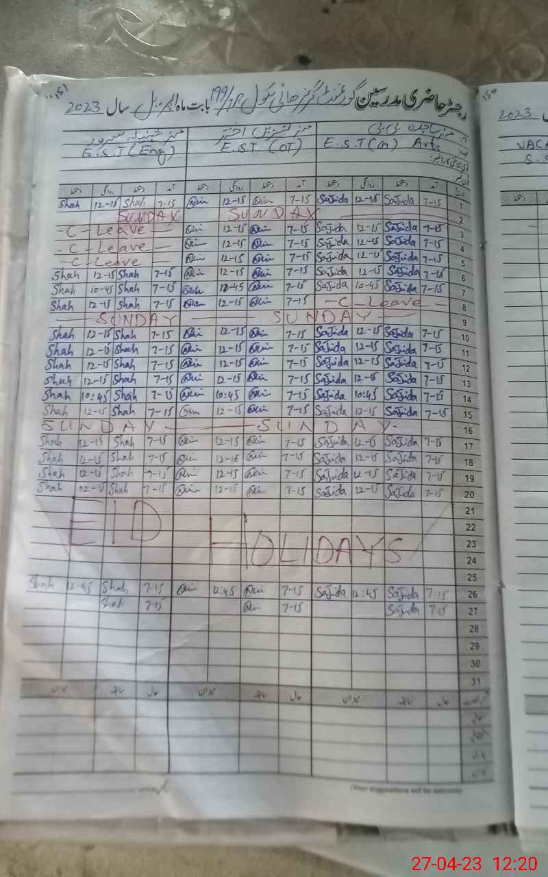 | Name: Uz**** Ar**** Designation: (School Headmaster's/Headmistress's) Ops Headmistress Phone/Cell Number: 03**** |