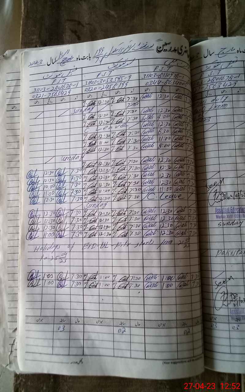 | Name: Wa**** Al**** Designation: (School Headmaster's/Headmistress's) PST Phone/Cell Number: 03**** |