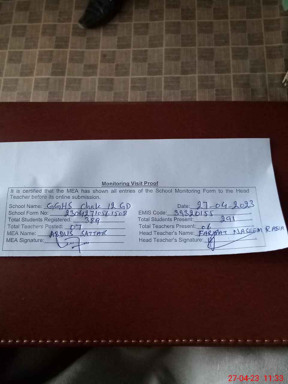 | EMIS Code: 39320155 | Name of School: GGHS 12/G.D | |||