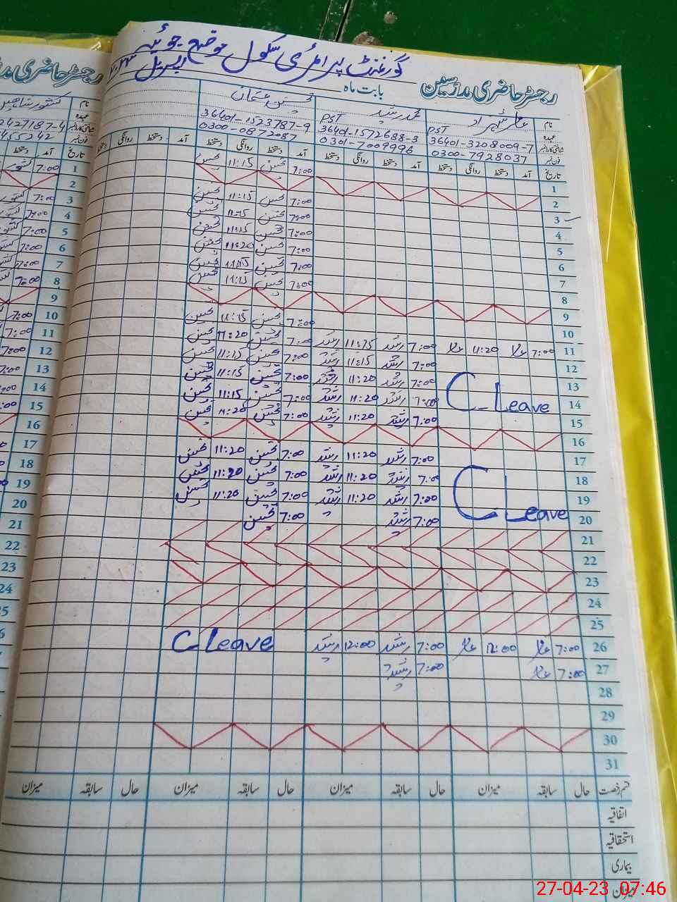 | Name: AA**** SH**** Designation: (School Headmaster's/Headmistress's) PST Phone/Cell Number: 03**** |