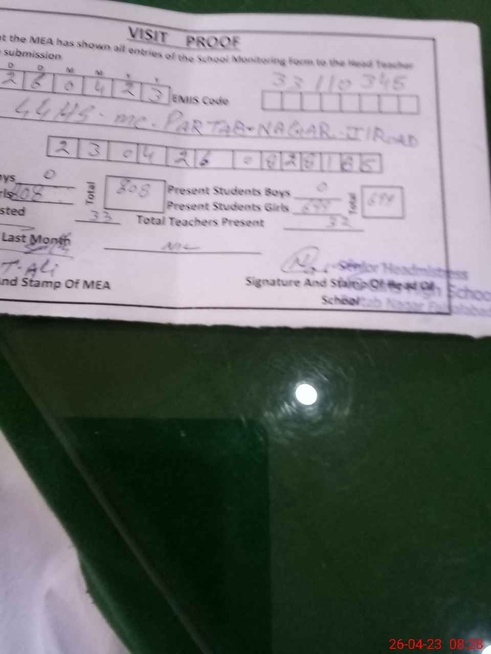 | EMIS Code: 33110345 | Name of School: GGHS MC PARTAB NAGAR FAISALABAD | |||