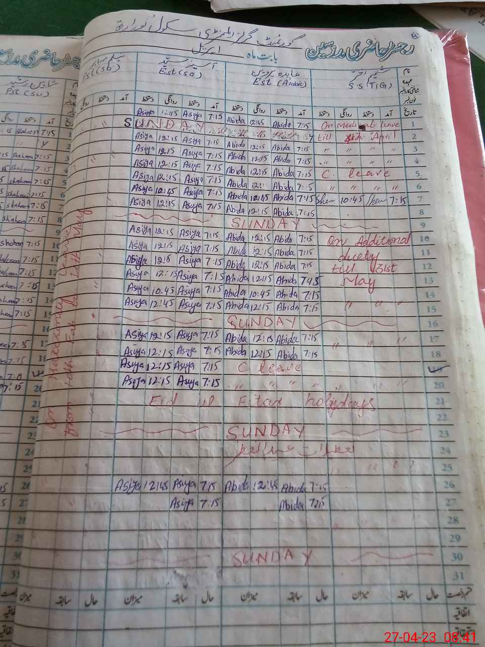 | Leave | Duty | Absent | Maternity | Medical | Ex- Pak |
