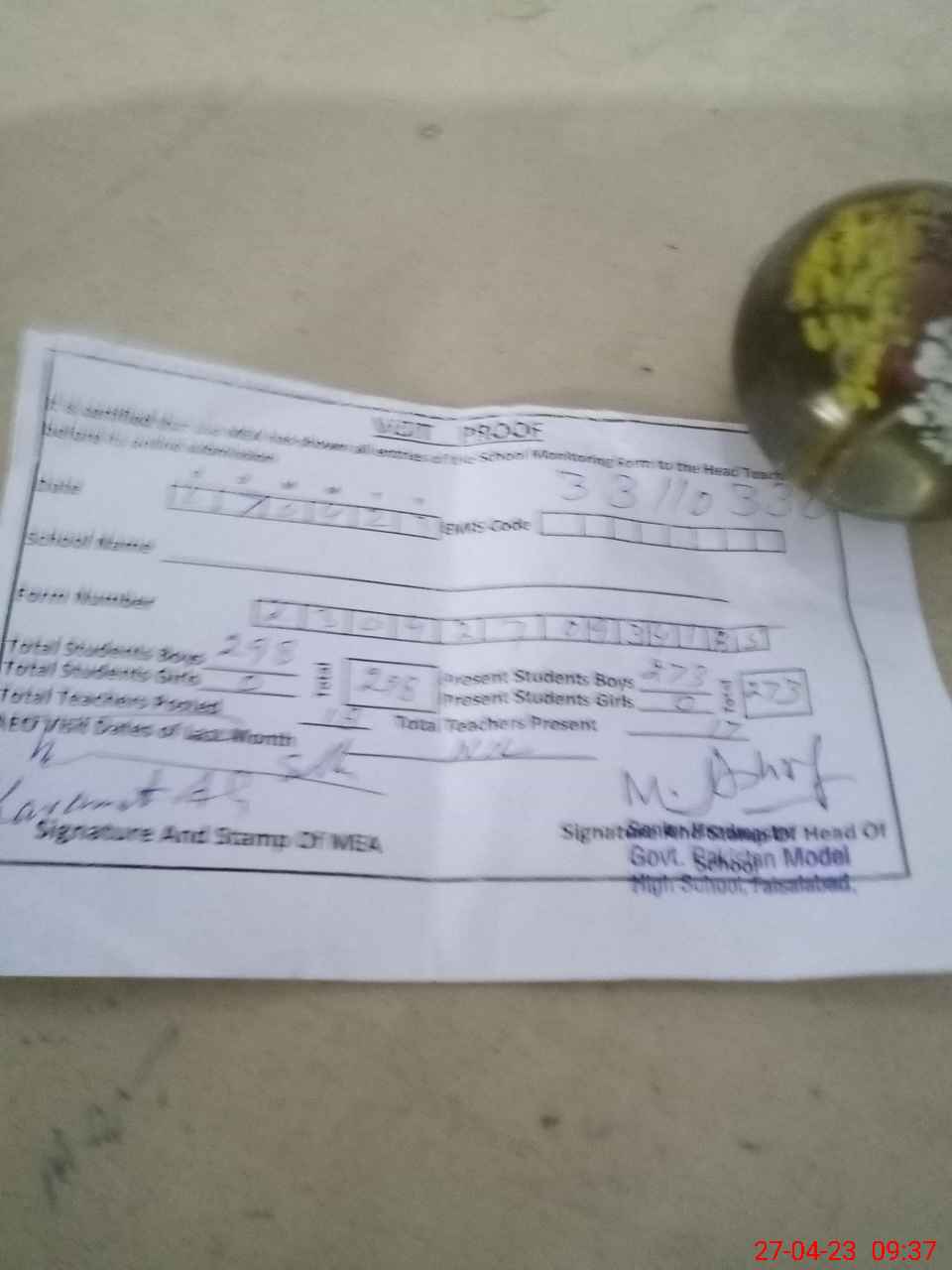 | EMIS Code: 33110330 | Name of School: GHS PAK MODEL RAIL BAZAR FSD | |||