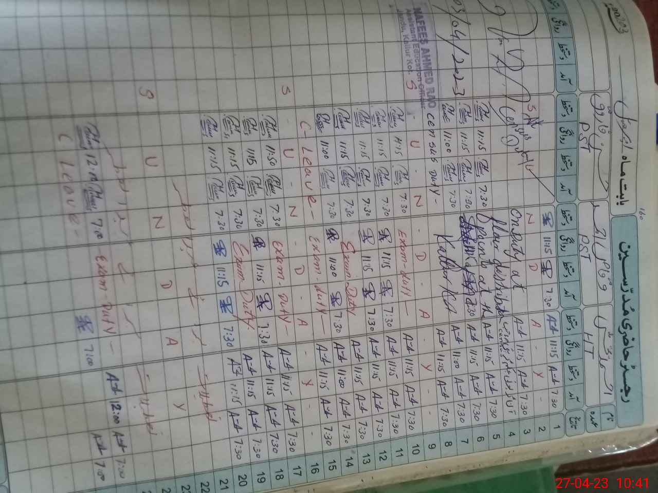 | Leave | Duty | Absent | Maternity | Medical | Ex- Pak |