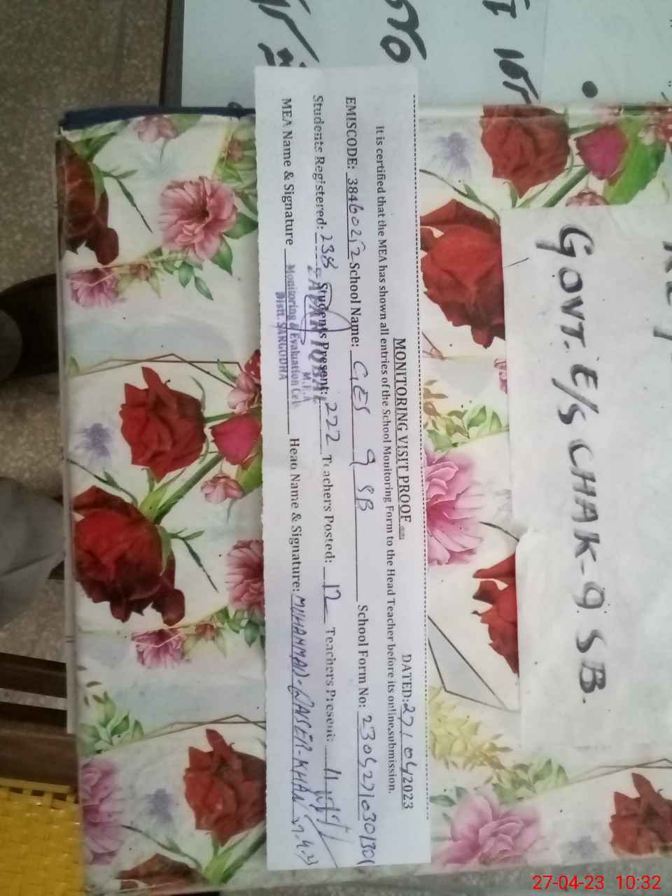 | EMIS Code: 38460252 | Name of School: GES CHAK NO.9 SB | |||