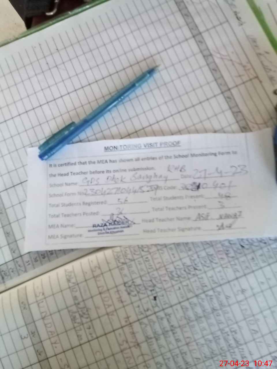 | EMIS Code: 38210401 | Name of School: GPS DHOK SANGHAY | |||