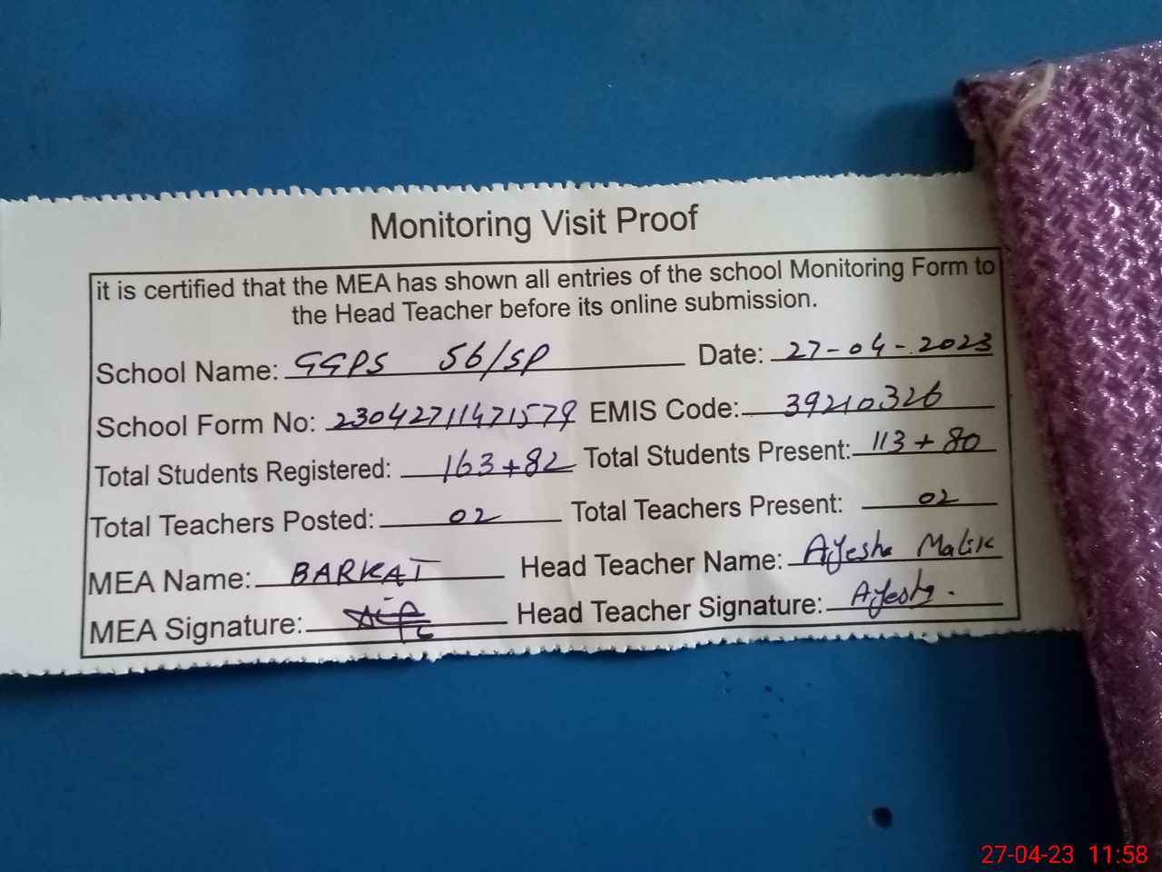 | EMIS Code: 39210326 | Name of School: GGPS 56 SP | |||