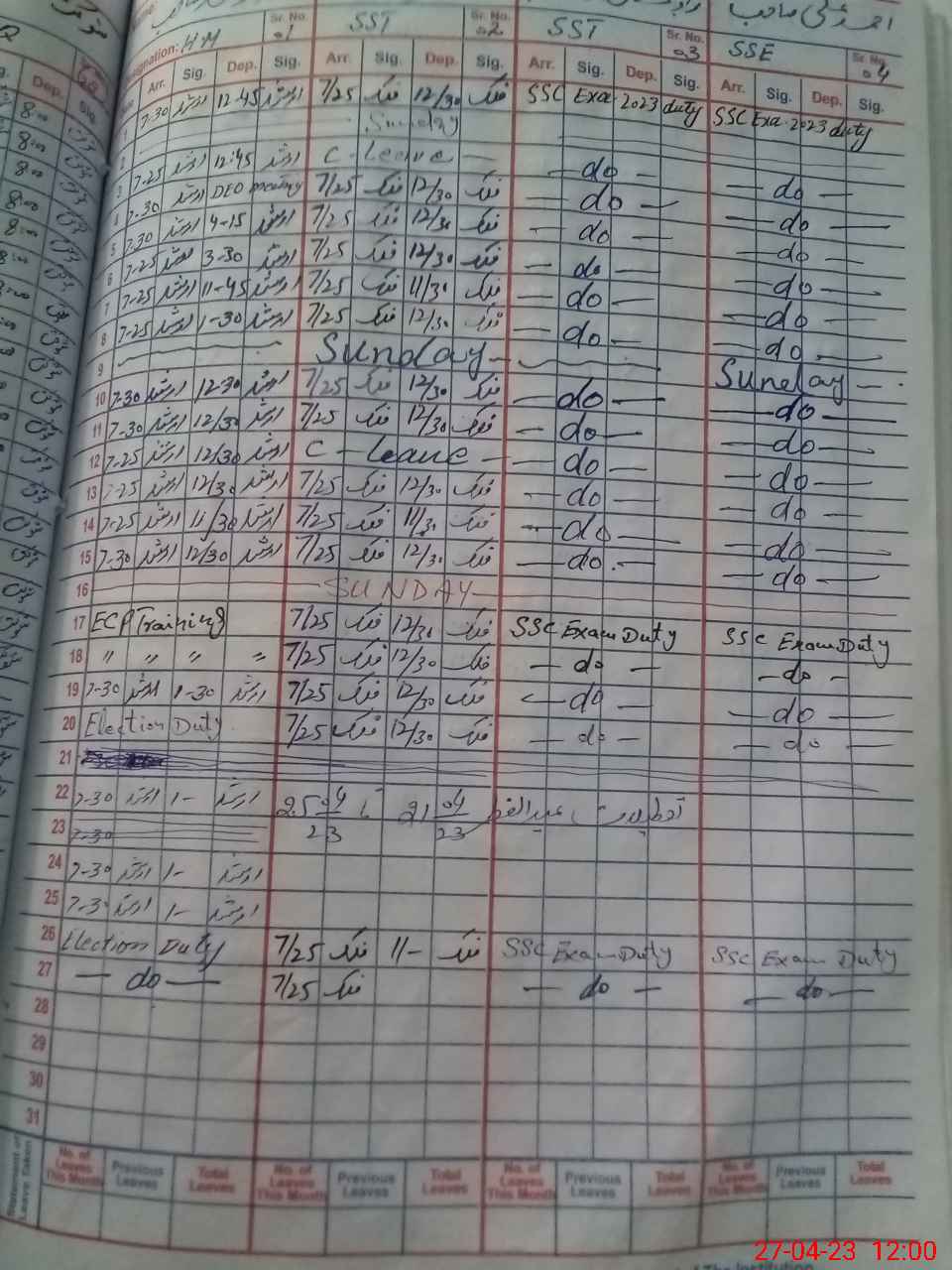| Leave | Duty | Absent | Maternity | Medical | Ex- Pak |