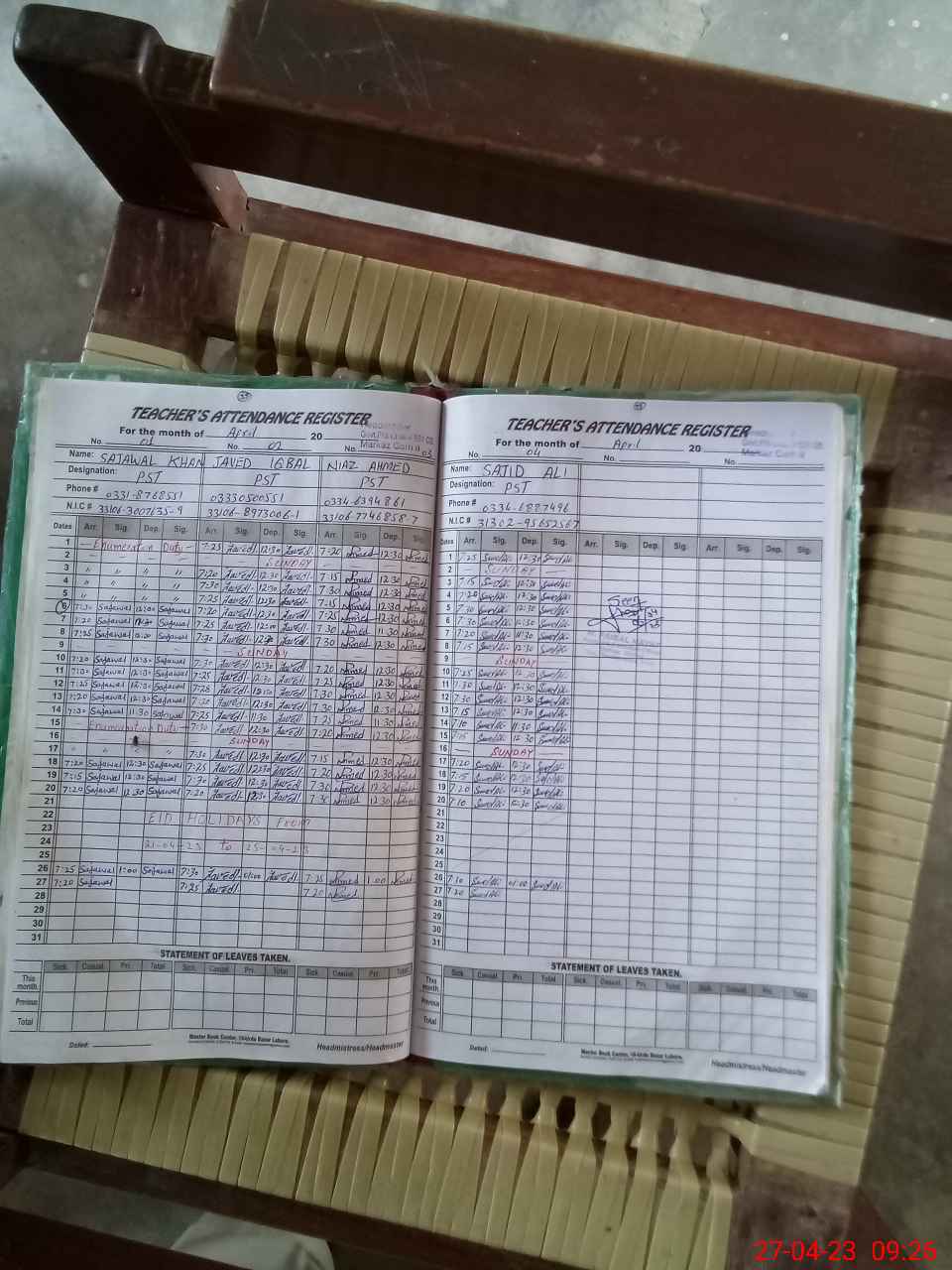 | Name: SA**** KH**** Designation: (School Headmaster's/Headmistress's) PST Phone/Cell Number: 03**** |