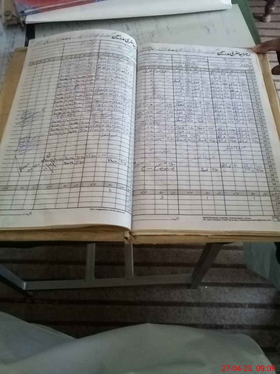 | CNIC | Full Name | Designation | R/C | Absence During Last Calender Month |