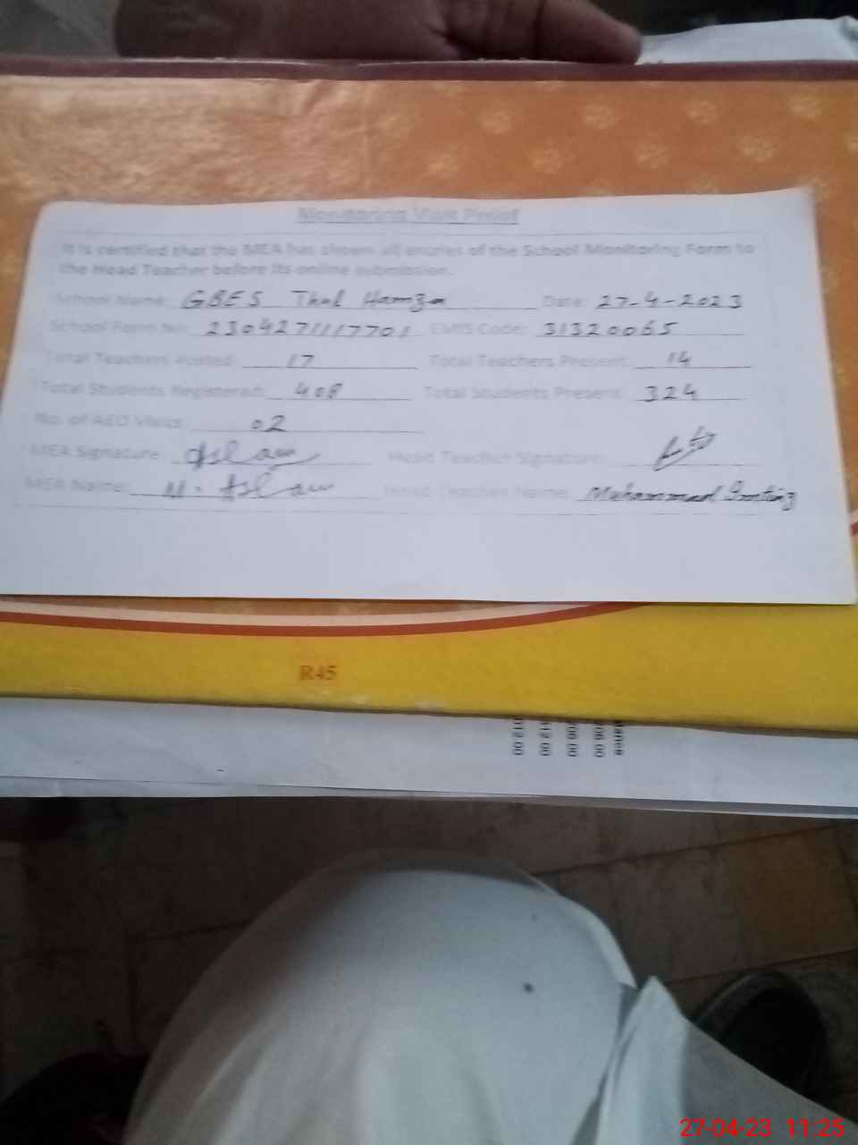 | EMIS Code: 31320065 | Name of School: GES THUL HAMZA | |||