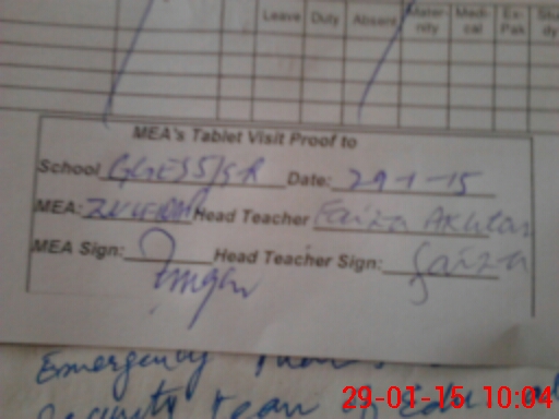 | Attendance Register | Head Teacher | MEA with School | Visit Proof |
