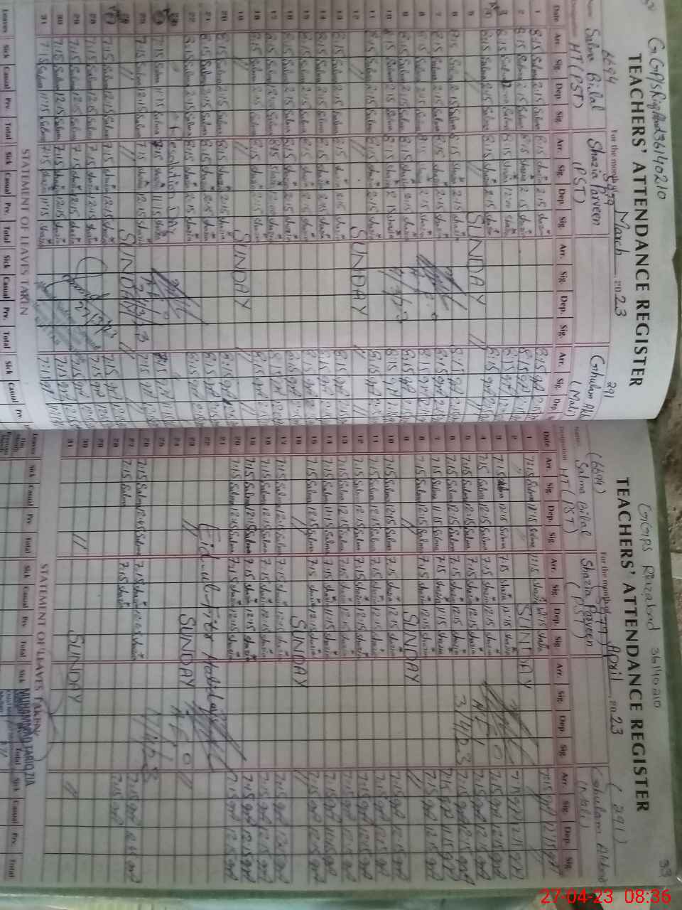 | CNIC | Full Name | Designation | R/C | Absence During Last Calender Month |