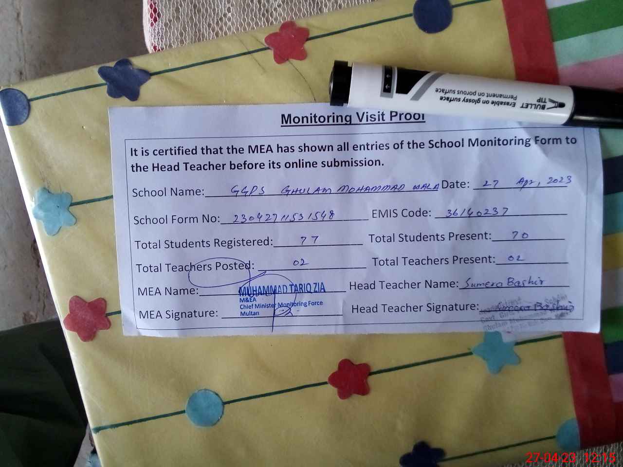 | EMIS Code: 36140237 | Name of School: GGPS GHULAM MOHAMMAD WALA | |||