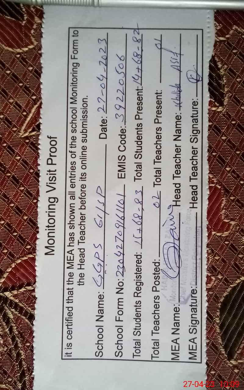 | EMIS Code: 39220506 | Name of School: GGPS CHAK NO. 61/SP | |||