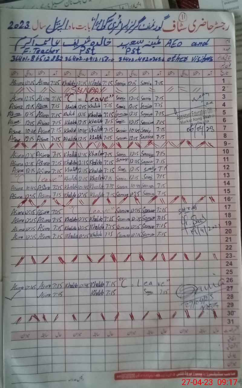 | Name: KH**** SH**** Designation: (School Headmaster's/Headmistress's) PST Phone/Cell Number: 03**** |