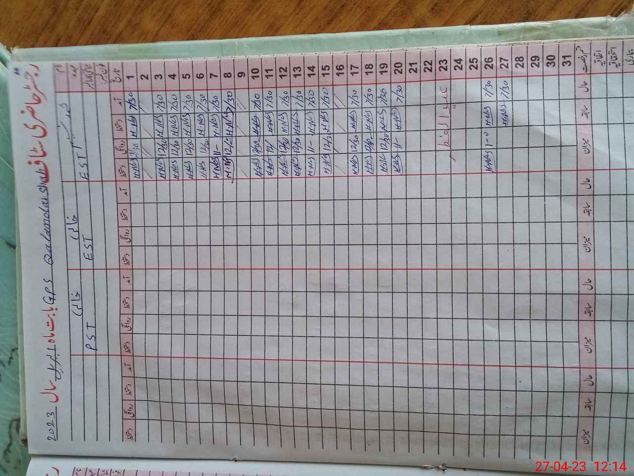 | CNIC | Full Name | Designation | R/C | Absence During Last Calender Month |