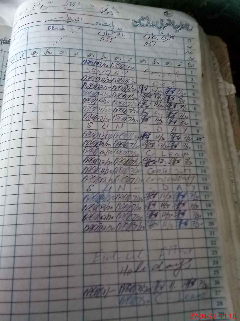| 33**** | Im**** Al**** Kh**** | PST | Regular | 0 | 31 | 0 | 0 | 0 | 0 | 0 | 0 | 0 | Casual |