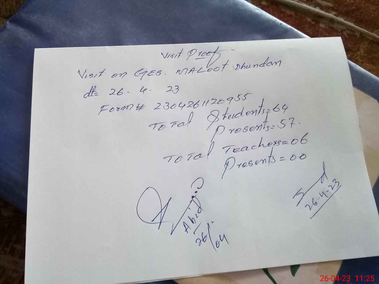 | Certified that this School was Inspected by the Undersigned MEA/DMO Today and the Information Stated Above is as Per Record. | |||||