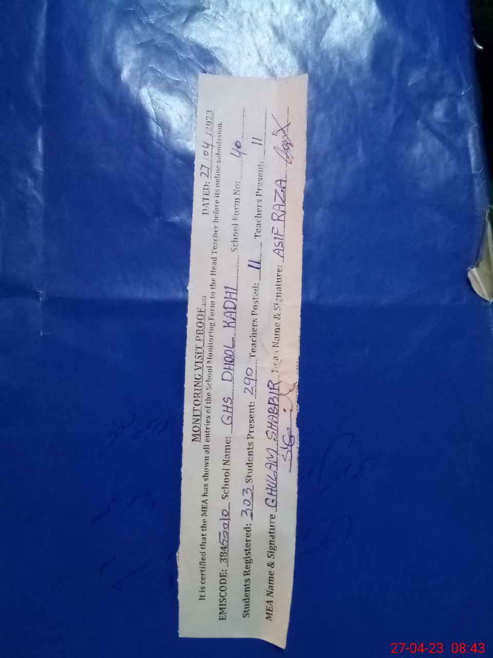 | EMIS Code: 38450010 | Name of School: GHS DHOOL KADHI | |||