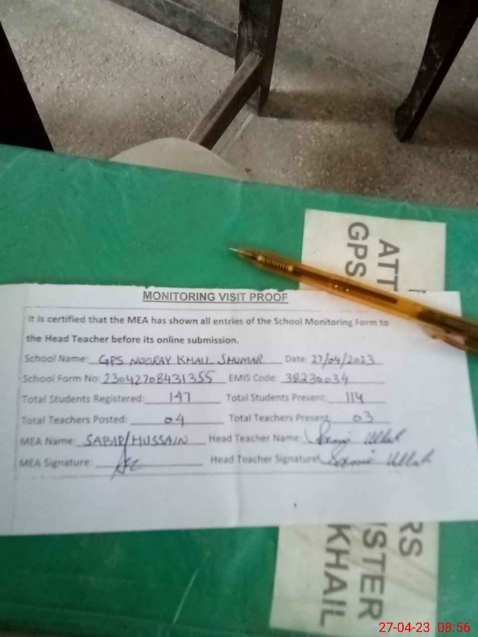 | EMIS Code: 38230034 | Name of School: GPS DERA NOORAY KHAIL SHIMAR | |||
