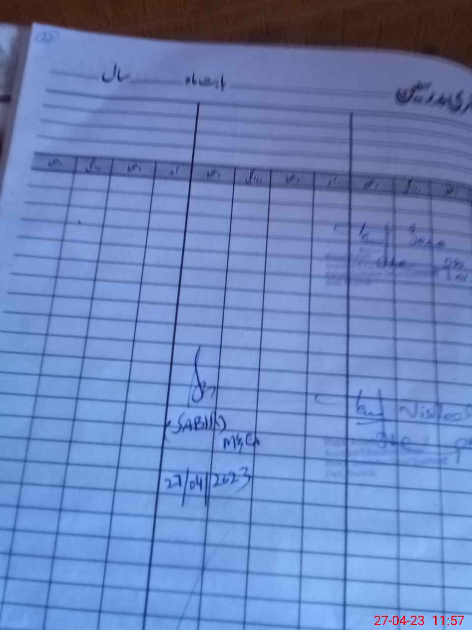 | CNIC | Full Name | Designation | R/C | Absence During Last Calender Month |