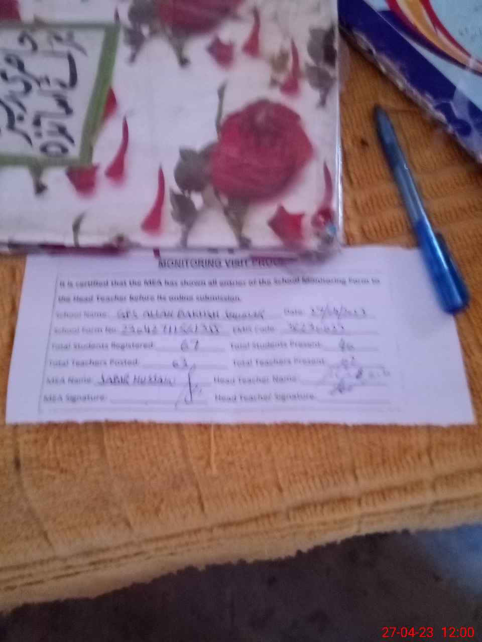 | Attendance Register | Head Teacher | MEA with School | Visit Proof |