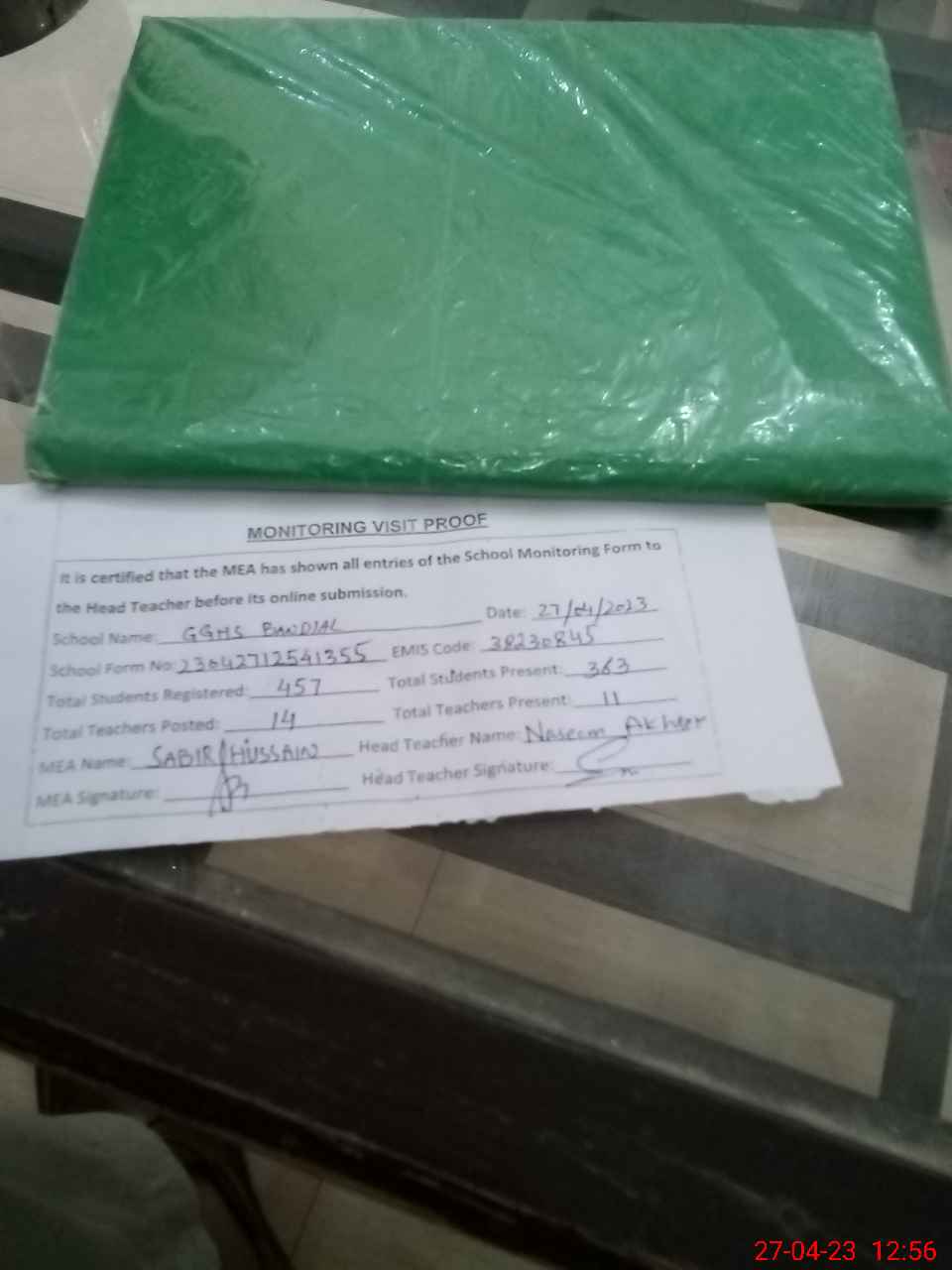 | EMIS Code: 38230845 | Name of School: GGHS BANDIAL | |||