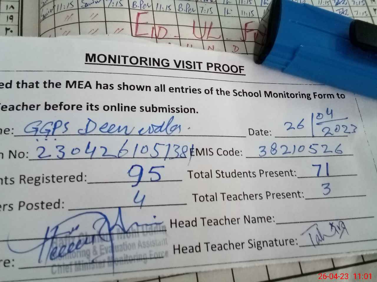 | EMIS Code: 38210526 | Name of School: GGPS DEEN WALA | |||
