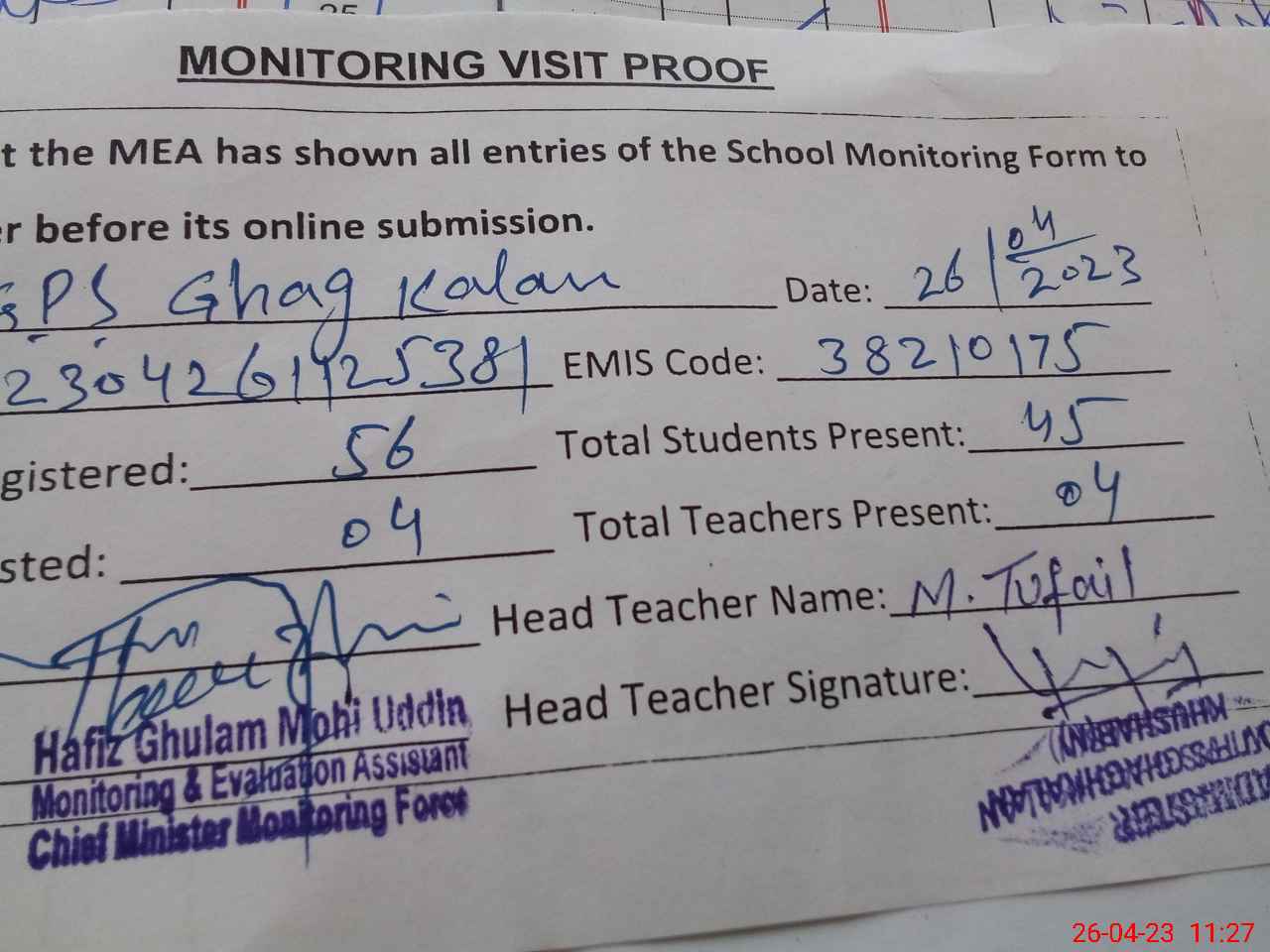 | EMIS Code: 38210175 | Name of School: GPS GHAGH KALAN | |||