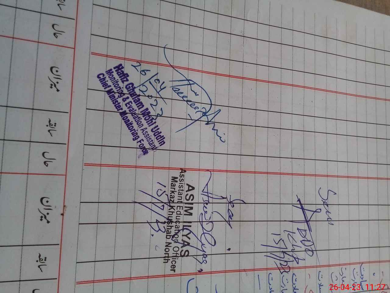 | District: KHUSHAB | Tehsil: KHUSHAB | Markaz: KHUSHAB (NORTH) (MALE) | Level: Primary | |