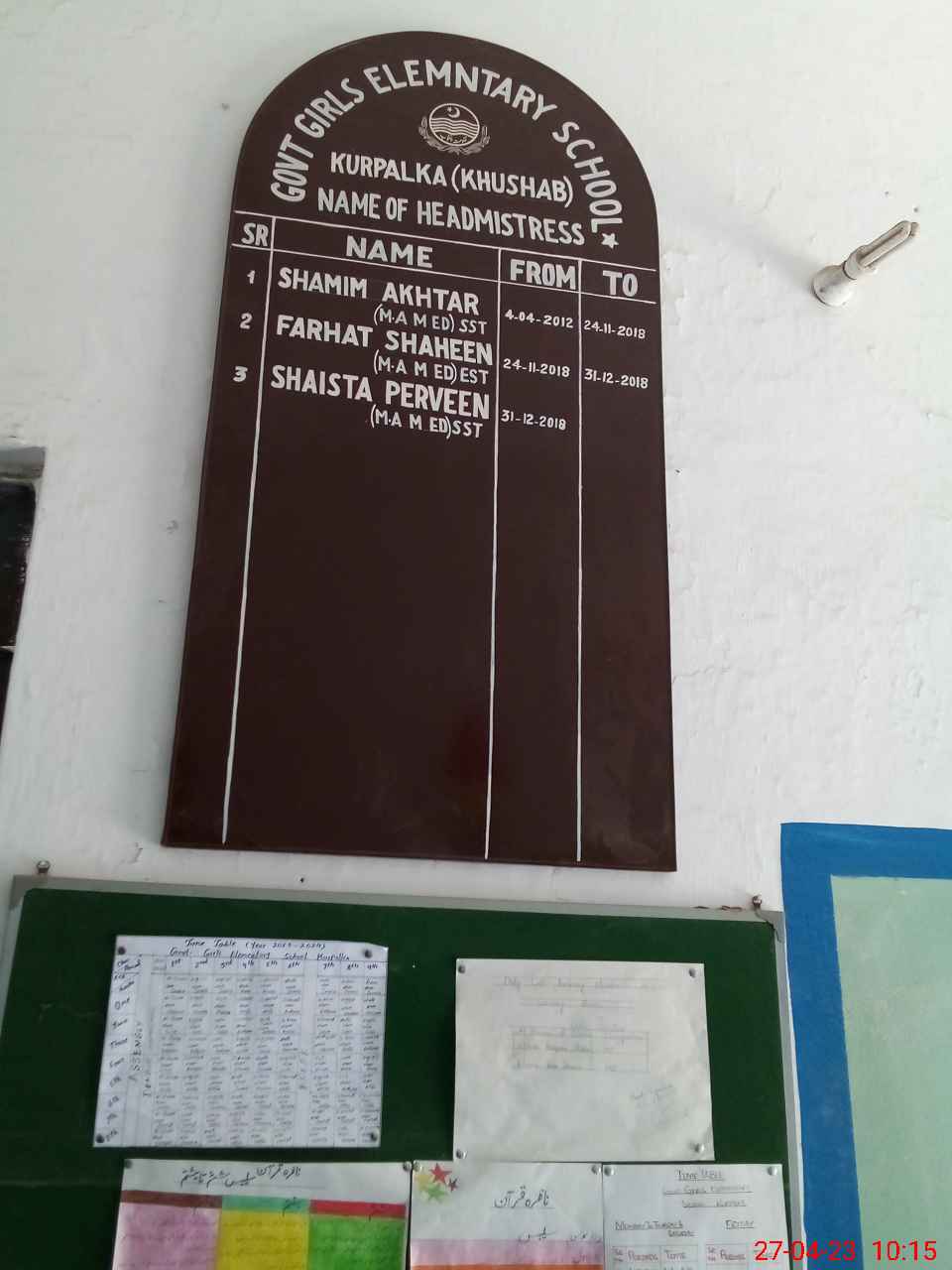 | District: KHUSHAB | Tehsil: KHUSHAB | Markaz: HAMOKA (FEMALE) | Level: Middle | |