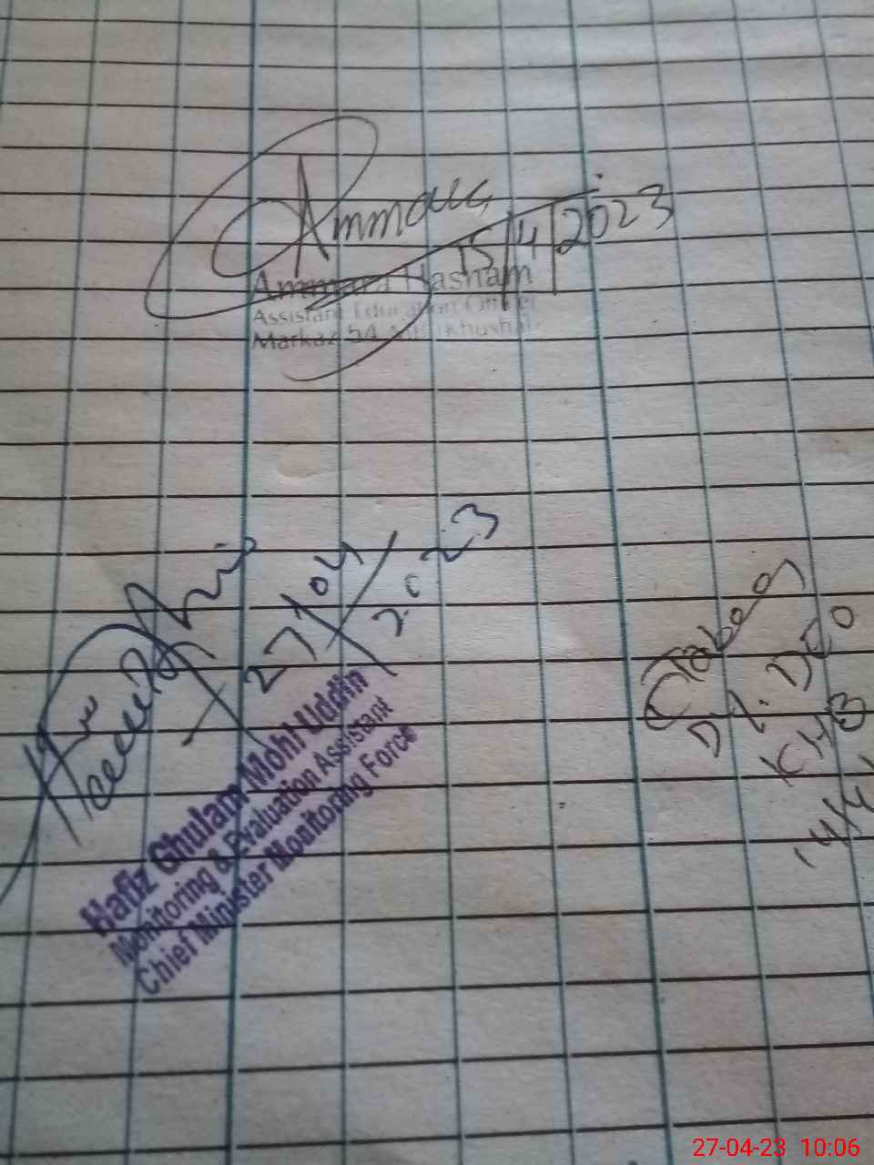 | Name: Sh**** Pe**** Designation: (School Headmaster's/Headmistress's) S.S.T.(GEN) Phone/Cell Number: 03**** |