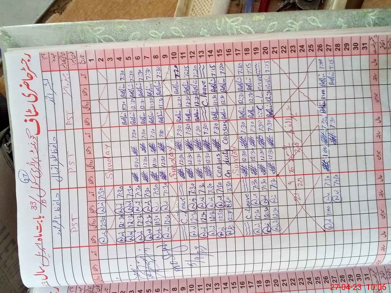 | CNIC | Full Name | Designation | R/C | Absence During Last Calender Month |