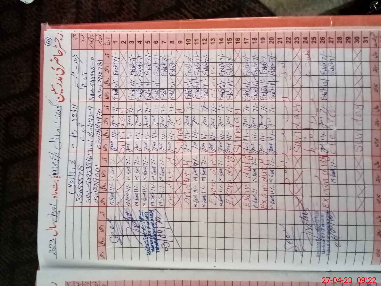 | CNIC | Full Name | Designation | R/C | Absence During Last Calender Month |