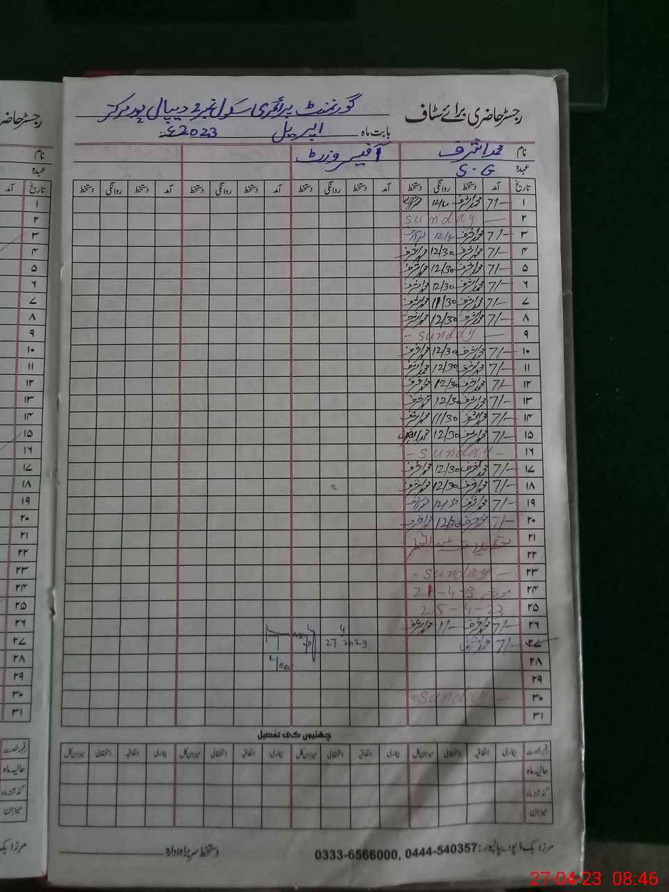 | Name: AB**** AZ**** Designation: (School Headmaster's/Headmistress's) PST Phone/Cell Number: 03**** |