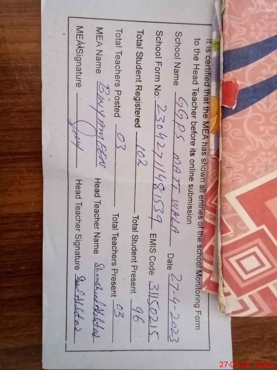 | EMIS Code: 31150215 | Name of School: GGPS MUIT WALA | |||
